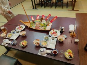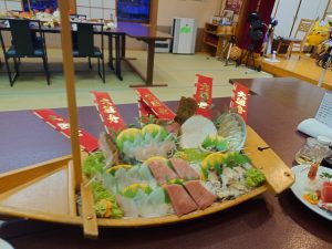 早速、宿に入り夕食まで部屋呑みをし、時間つぶしをして夕食は「海の幸」満載の超豪華料理で刺身を満喫しました。