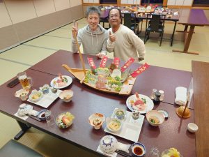 我がセンク21には、バイクツーリング部がありますが、能登地震を皮切りに仕事が忙しくなりツーリングに、行けなくなりモヤモヤしている時2024年度にバイクツーリングで行った「気仙沼ちゃんの宿」の美味しい料理を思い出したので、バイク仲間で、盛岡事務所の先輩(所長)をお誘いして盛り上がってきました。